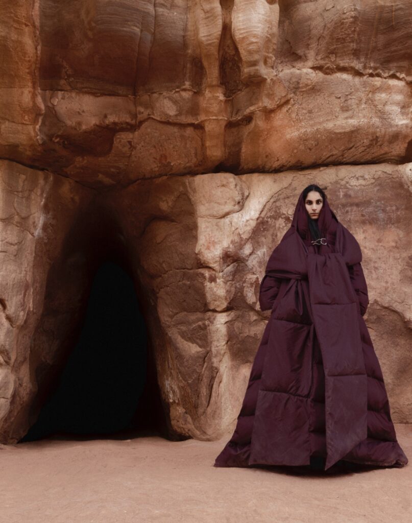 A. Al-Najah | النجاة is a collaboration between Jad Maq and Nazzal Studio, rooted in Bedouin survival instincts from Bilad al-Sham. Using leather, latex, silk, metal, and pigments drawn directly from the land, the collection strips life back to what is necessary. Every form is shaped by function, protection, and presence, inspired by Bedouin rituals, symbols, and tattoo traditions alongside Palestinian and Jordanian tatreez, the work translates ancestral instincts into modern day craft. This is not nostalgia. It is survival translated into contemporary form. A reminder that dignity, clarity, and strength emerge when nothing unnecessary remains. And I see Nazzal Studio evolving further into a multidisciplinary platform. Fashion, performance, sound, and installation will continue to merge. I’m less interested in expansion for scale, though it would be nice to grow as a brand, but I won’t compromise in depth, longevity, and cultural impact.